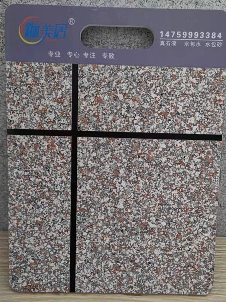 6D鉫美居源石漆(水包砂)是仿天然大理石的一-種新型涂料。是以含合成樹脂乳液為主要成膜物質,外加一些天然彩砂和各種助劑配置而成的。施工更加簡單,防水抗 裂,安全持久,抗沾污,不褪色, 高耐候??梢勒湛蛻舻囊筮M行配制各種大小不一、色彩不同的花紋的仿石燒面花崗面紋理和色彩并使用其達到滿意的裝飾效果。